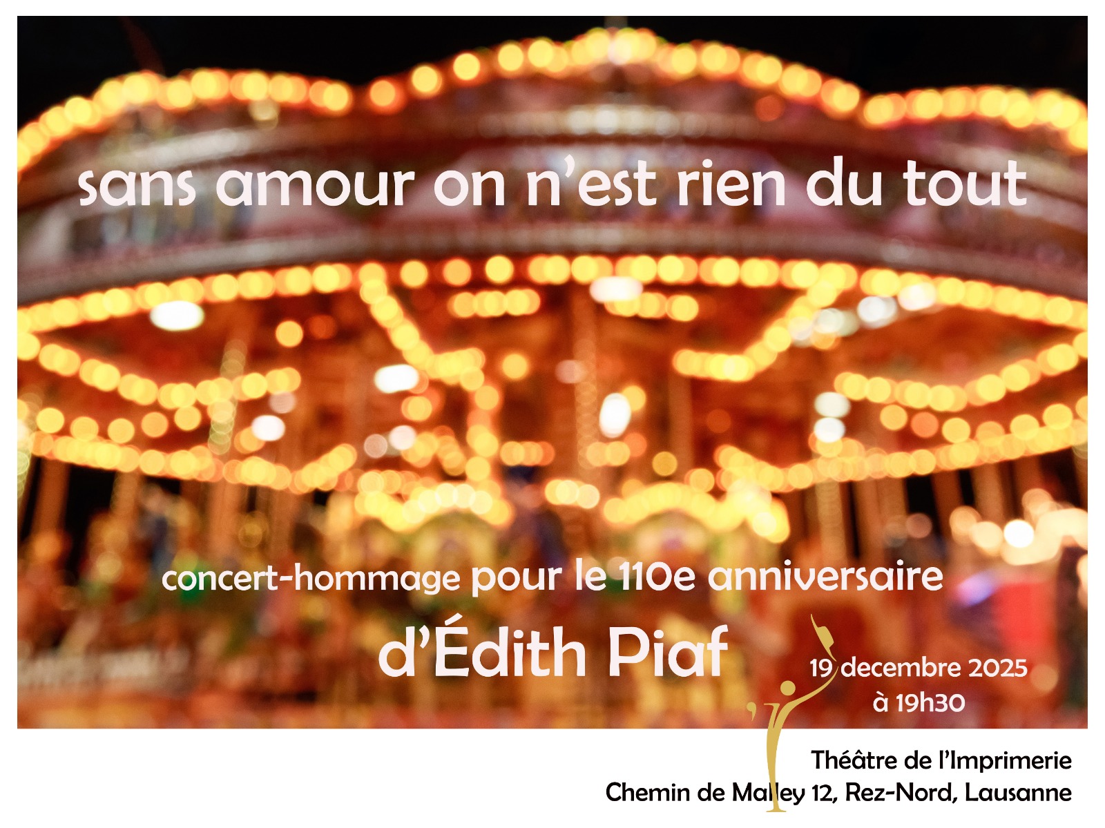 Le 19 décembre prochain marquera le 110e anniversaire de la naissance d’Édith Piaf. Le 19 décembre à 19h30, nous vous convions à une soirée en l’honneur de cette grande chanteuse.